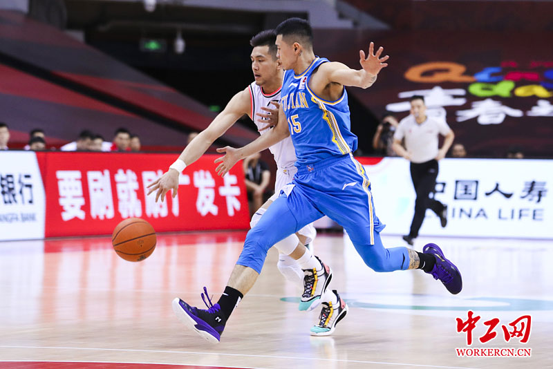 2020年7月17日,山东青岛,19/20CBA复赛第二阶段第11日,辽宁衡业Vs福建豹发力。陈林坚防守郭艾伦。图片来源:视觉中国