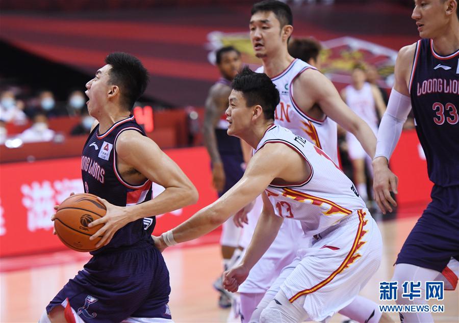 7月21日,时代中国广州队球员司坤(左一)在比赛中带球突破。 当日,在山东青岛举行的2019-2020赛季中国男子篮球职业联赛(CBA)复赛第二阶段(崂山赛区)比赛中,吉林九台农商银行队以98比95战胜时代中国广州队。 新华社记者李紫恒摄