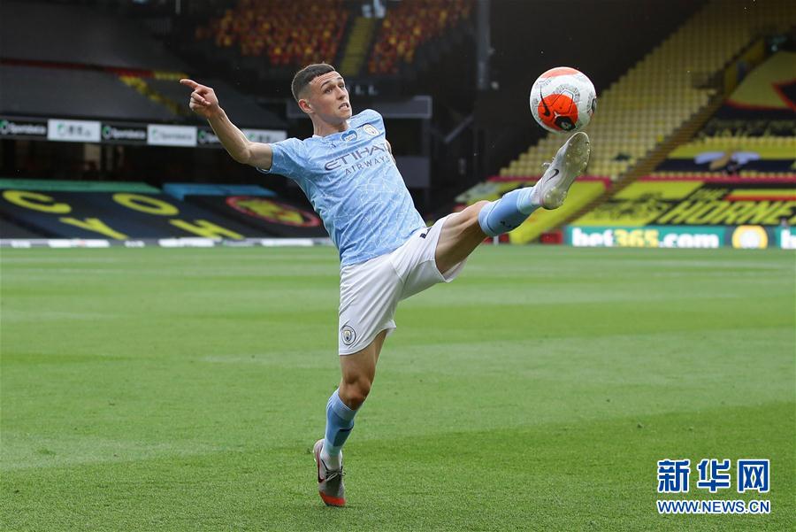 7月21日,曼城队球员福登在比赛中停球。 当日,在2019-2020赛季英格兰足球超级联赛第37轮比赛中,曼城队客场以4比0战胜沃特福德队。 新华社/路透