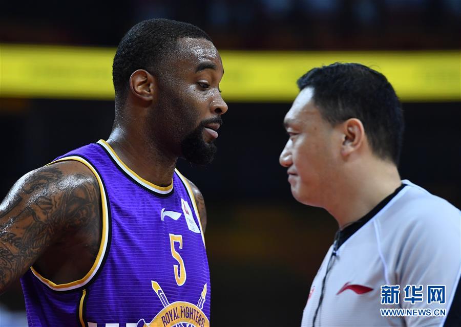 7月24日,北京控股队球员摩尔特里(左)在比赛中。 当日,在山东青岛举行的2019-2020赛季中国男子篮球职业联赛(CBA)复赛第二阶段(红岛赛区)比赛中,北京首钢队对阵北京控股队。 新华社记者朱峥摄