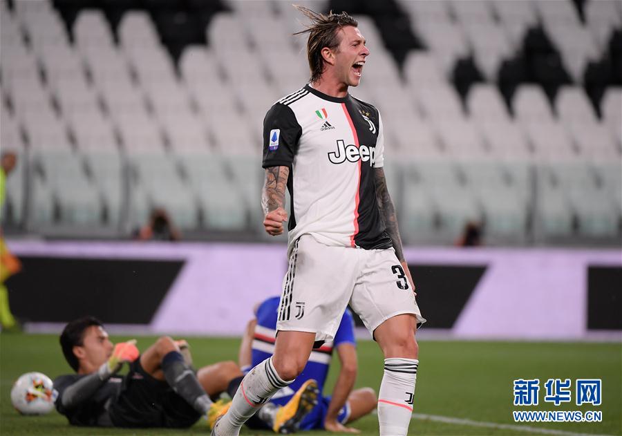 7月26日,尤文图斯队球员贝尔纳代斯基(前)在比赛中庆祝进球。 当日,在2019-2020赛季意大利足球甲级联赛第36轮比赛中,尤文图斯队主场以2比0战胜桑普多利亚队,提前两轮夺得本赛季意甲联赛冠军。 新华社发(费德里科·塔尔迪托摄)
