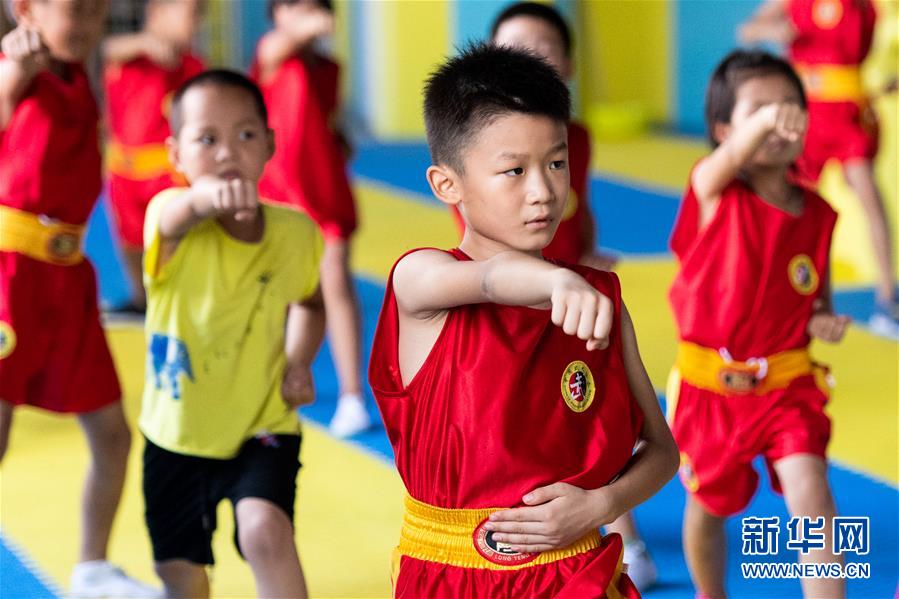7月29日,学生王振华(前)在麻阳开扬文武学校练习武术。 湖南省怀化市麻阳苗族自治县有着悠久的习武传统。暑假期间,当地不少学生报名参加武术兴趣班,在强身健体的同时丰富假期生活。 新华社记者陈思汗摄