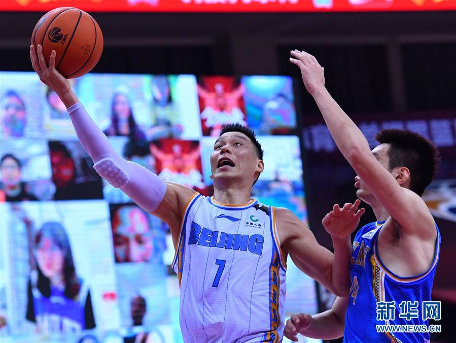 8月2日,北京首钢队球员林书豪(左)在比赛中突破上篮。 当日,在山东青岛举行的2019-2020赛季中国男子篮球职业联赛(CBA)季后赛四分之一决赛中,北京首钢队以107比75战胜福建豹发力队,晋级四强。 新华社记者 朱峥 摄