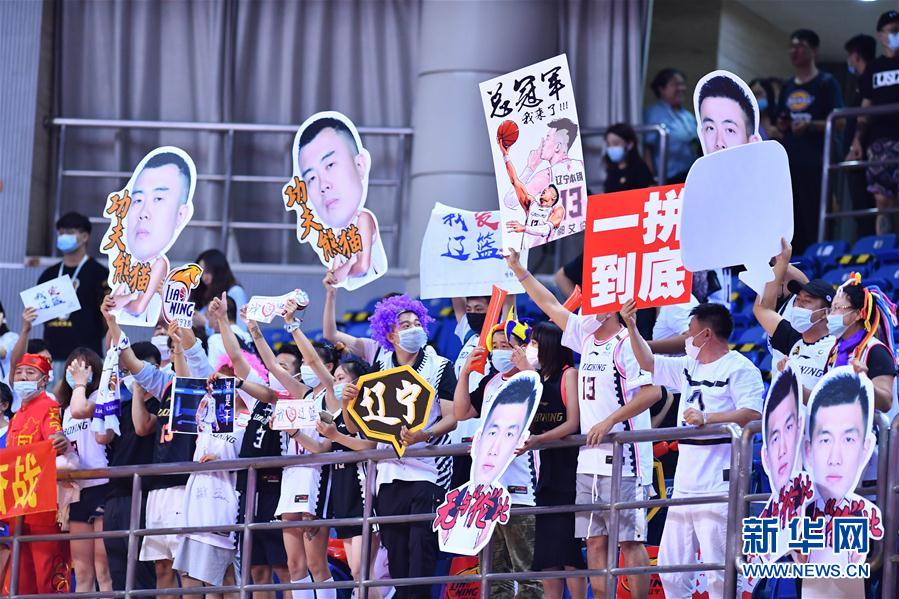8月13日,辽宁本钢队球迷庆祝球队获胜。 当日,在山东青岛举行的2019-2020赛季中国男子篮球职业联赛(CBA)总决赛第二场比赛中,辽宁本钢队以115比113战胜广东东莞银行队。目前,双方以1比1的总比分战平。 新华社记者朱峥摄