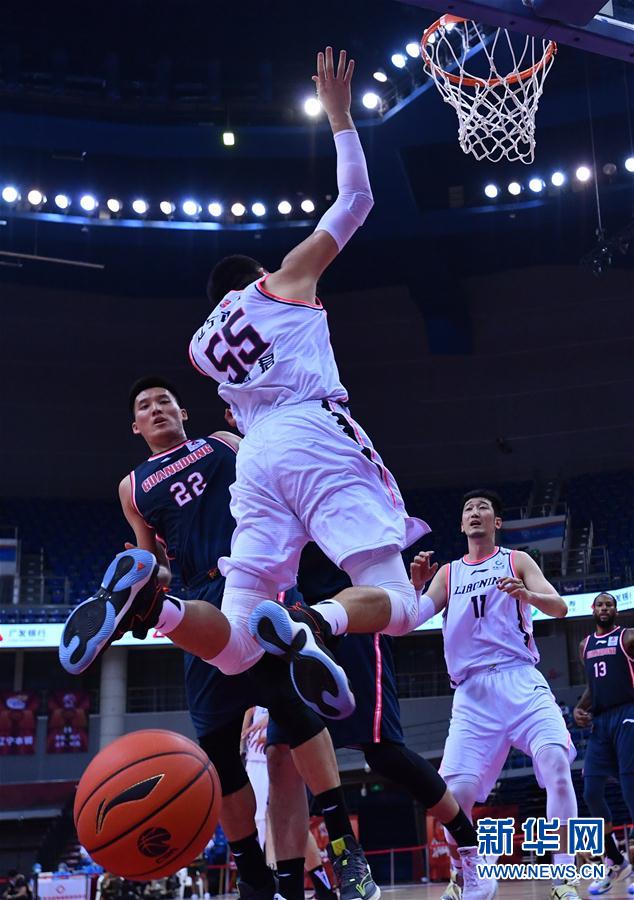 8月13日,辽宁本钢队球员韩德君(中)在比赛中突破。 当日,在山东青岛举行的2019-2020赛季中国男子篮球职业联赛(CBA)总决赛第二场比赛中,辽宁本钢队以115比113战胜广东东莞银行队。目前,双方以1比1的总比分战平。 新华社记者朱峥摄