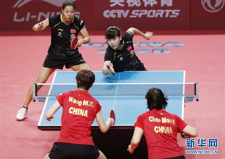 8月20日,顾玉婷(上左)/陈幸同(上右)在比赛中,她们以0比3不敌陈梦/王曼昱。 当日,在海南陵水举行的中国乒乓球队奥运模拟赛女子团体决赛中,由陈梦、孙颖莎和王曼昱组成的女子一团以3比0战胜由顾玉婷、陈幸同和孙铭阳组成的女子二团,获得冠军。 新华社发(边玉翔摄)