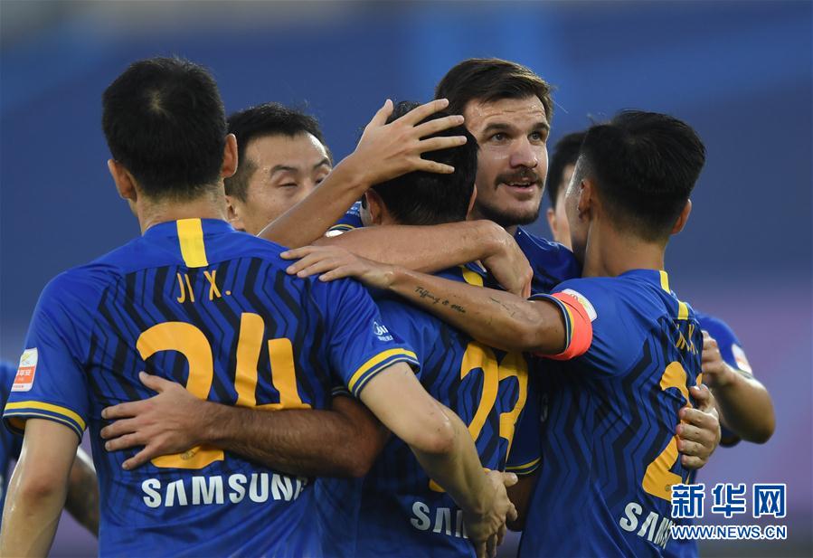 9月1日晚,2020赛季中超联赛第一阶段第八轮比赛收官。29日,失去了头号射手扎哈维的广州富力队难阻连败,0:2输给了深圳佳兆业队。大连人队终于品尝到了胜利的味道,凭借林良铭的进球,他们1:0力克山东鲁能队,终结了对手的四连胜。30日,凭借两名外援的5个入球,江苏苏宁5:2大胜河南建业,结束了近3轮不胜局面。在另一场比赛中,申花队的曹赟定用一记世界波首开纪录,恒大队的塔利斯卡随后将比分扳平,费南多在下半场造成对手乌龙并贡献一粒进球,艾克森点球命中,广州恒大4:1大胜上海申花。31日,苏州赛区迎来第八轮的两场比赛,赛区“领头羊”上海上港与排名垫底的天津泰达的“首尾之战”,以上港4:1大胜告终;而在“升班马”石家庄永昌与河北华夏幸福的“河北德比”中,永昌3:1笑到最后。9月1日,凭借U23小将胡靖航上半场的梅开二度和埃弗拉的下半场破门,武汉卓尔3:0青岛黄海,第一阶段双杀对手。巴坎布完成“大四喜”并助攻王子铭进球,北京中赫国安5:2大胜重庆当代。 江苏苏宁易购 5-2 河南建业 8月30日,凭借两名外援的5个入球,江苏苏宁在大连举行的中超联赛第8轮比赛中5:2大胜河南建业。 本场比赛江苏苏宁占据较大优势,在前15分钟即取得两球领先,外援桑蒂尼在第9分钟接到谢鹏飞的传中头球破门,第15分钟又用脚后跟将队友埃德尔突破后的近距离传球磕入大门。落后的河南建业则在上半时结束前突然发威,外援多拉多在第39分钟创造点球机会,他第一次主罚中路被扑出,但因对方守门员违规获得第二次罚球机会,多拉多再次主罚中路终于打进。在上半时补时阶段,倪玉崧远射破门为河南建业扳平比分。但在补时阶段的最后时刻,江苏苏宁的外援埃德尔把队友打在特谢拉身上弹回的球直接劲射入网,帮助球队以3:2继续保持领先。 易边再战,河南建业的进球功臣倪玉崧在第53分钟获得本场比赛的第二张黄牌被罚下场,令球队陷入完全被动。随后守门员吴䶮的一次失误使河南建业落后差距扩大,第66分钟,江苏苏宁进攻越位,河南建业球员在越位位置将球踢回给吴䶮,而吴䶮在对方外援桑蒂尼上前争抢时双手张开,目视后者抢球后将球打入空门,裁判员鸣哨示意进球有效。江苏苏宁随后基本控制场面,并在第79分钟由埃德尔凌空垫射将比分扩大为5:2。 图为8月30日,江苏苏宁易购队球员桑蒂尼(右二)在进球后与队友庆祝。 新华社记者龙雷摄