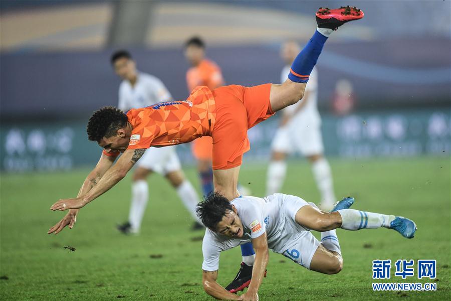9月1日晚,2020赛季中超联赛第一阶段第八轮比赛收官。29日,失去了头号射手扎哈维的广州富力队难阻连败,0:2输给了深圳佳兆业队。大连人队终于品尝到了胜利的味道,凭借林良铭的进球,他们1:0力克山东鲁能队,终结了对手的四连胜。30日,凭借两名外援的5个入球,江苏苏宁5:2大胜河南建业,结束了近3轮不胜局面。在另一场比赛中,申花队的曹赟定用一记世界波首开纪录,恒大队的塔利斯卡随后将比分扳平,费南多在下半场造成对手乌龙并贡献一粒进球,艾克森点球命中,广州恒大4:1大胜上海申花。31日,苏州赛区迎来第八轮的两场比赛,赛区“领头羊”上海上港与排名垫底的天津泰达的“首尾之战”,以上港4:1大胜告终;而在“升班马”石家庄永昌与河北华夏幸福的“河北德比”中,永昌3:1笑到最后。9月1日,凭借U23小将胡靖航上半场的梅开二度和埃弗拉的下半场破门,武汉卓尔3:0青岛黄海,第一阶段双杀对手。巴坎布完成“大四喜”并助攻王子铭进球,北京中赫国安5:2大胜重庆当代。 大连人 1-0 山东鲁能泰山 8月29日,2020中超联赛大连赛区第一阶段第8轮的一场比赛在山东鲁能和大连人队之间展开。凭借下半场林良铭门前抢射,大连人队最终1:0力克鲁能,在终结对手四连胜的同时,终于赢下赛季首场胜利。 开场后,求胜心切的大连人队在中前场主动压迫鲁能防线。在对方近身逼抢下,鲁能中后场球员出现几次传球失误,但大连人队球员最后一传、最后一射准头不佳。反观鲁能顶住大连人队一波攻势后,占据场上控制权。第24分钟、第35分钟时,大连人队外援拉尔森和丹尼尔森分别获得射门良机,但一次射门绵软无力、一次头槌被门将扑出。半场结束,双方均未取得进球。 由于首发中卫郑铮、卡达尔先后在拼抢中受伤,鲁能被迫对中后场连续进行人员调整。第62分钟,大连人队在前场连续进攻,孙铂大禁区左侧反吊鲁能远门柱,林良铭先出一脚凌空将球打进,大连人队一球领先。落后的鲁能遣上小将郭田雨,与佩莱、费莱尼组成进攻“三座高塔”。 双方随后进入对攻,鲁能进攻好手虽多,但传球质量不尽如人意。场面上鲁能一度形成围攻态势,却始终无法将控球优势转化为得分。最终,鲁能0:1不敌大连人队,目送对手全取三分。 图为8月29日,大连人队球员童磊(下)与山东鲁能泰山队球员莫伊塞斯在拼抢时双双摔倒。 新华社记者潘昱龙摄