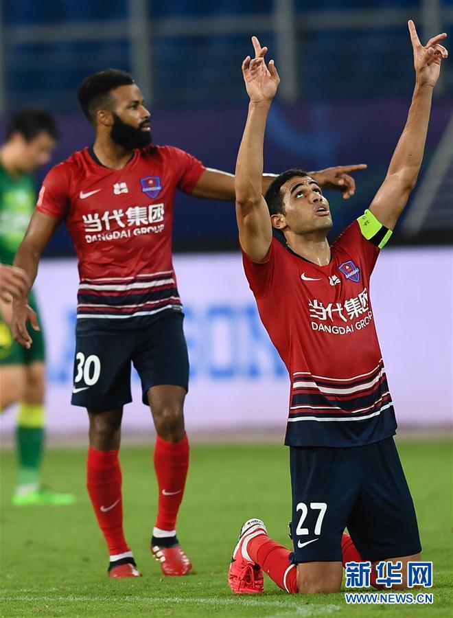9月1日晚,2020赛季中超联赛第一阶段第八轮比赛收官。29日,失去了头号射手扎哈维的广州富力队难阻连败,0:2输给了深圳佳兆业队。大连人队终于品尝到了胜利的味道,凭借林良铭的进球,他们1:0力克山东鲁能队,终结了对手的四连胜。30日,凭借两名外援的5个入球,江苏苏宁5:2大胜河南建业,结束了近3轮不胜局面。在另一场比赛中,申花队的曹赟定用一记世界波首开纪录,恒大队的塔利斯卡随后将比分扳平,费南多在下半场造成对手乌龙并贡献一粒进球,艾克森点球命中,广州恒大4:1大胜上海申花。31日,苏州赛区迎来第八轮的两场比赛,赛区“领头羊”上海上港与排名垫底的天津泰达的“首尾之战”,以上港4:1大胜告终;而在“升班马”石家庄永昌与河北华夏幸福的“河北德比”中,永昌3:1笑到最后。9月1日,凭借U23小将胡靖航上半场的梅开二度和埃弗拉的下半场破门,武汉卓尔3:0青岛黄海,第一阶段双杀对手。巴坎布完成“大四喜”并助攻王子铭进球,北京中赫国安5:2大胜重庆当代。 北京中赫国安 5-2 重庆当代 9月1日,在2020中超联赛第一阶段第八轮最后一场比赛中,巴坎布完成“大四喜”并助攻王子铭取得进球,帮助北京中赫国安5:2大胜重庆当代,终结球队三轮不胜的尴尬局面。 中超第一阶段赛程过半后,国安位列苏州赛区第二,与榜首的上海上港有3分的差距。此役面对在前七轮一胜三平三负、表现平平的重庆当代,近3场比赛未尝胜绩的国安抢分欲望强烈。 第12分钟,张稀哲中场送出精准直塞,巴坎布一路将球带至禁区,面对门将冷静推射远角破门,个人连续四轮有进球入账,国安1:0取得领先。第43分钟,比埃拉中场分球给右路高速插上的王子铭,后者将球带至禁区后横传中路,门前包抄的巴坎布推射得手。重庆队在上半场补时阶段抓住机会,卡尔德克头球顶近角破门,为重庆队扳回一城。 下半场刚开场一分钟,王子铭便为国安打入第三粒进球。巴坎布右侧带球传至禁区中路,王子铭接球后推射破门。国安的第四粒进球在一分钟后到来,重庆队后防出现失误,巴坎布禁区内捡漏将球推射入网。三球领先的国安并未就此罢手,第63分钟,张稀哲左侧挑传至中路,巴坎布在无人看防的情况下爆射破门,完成“大四喜”。下半场临近结束,国安韩国外援金玟哉禁区内滑铲犯规,裁判果断判罚点球,虽然费尔南迪尼奥将点球罚入,但也只能目送球队送给国安一场大胜。 图为9月1日,重庆当代队球员卡尔德克(右)在比赛中庆祝进球。 新华社记者季春鹏摄
