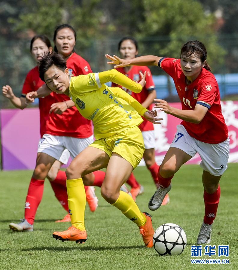 9月2日,江苏苏宁女足球员吴澄舒(前)在比赛中突破。 当日,在2020年中国足球协会女子足球超级联赛第四轮比赛中,江苏苏宁女足以5比1战胜浙江杭州女足。 新华社记者江文耀摄