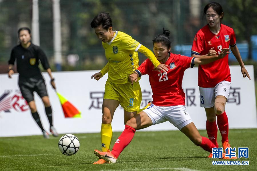 9月2日,江苏苏宁女足球员吴澄舒(前左一)在比赛中突破。 当日,在2020年中国足球协会女子足球超级联赛第四轮比赛中,江苏苏宁女足以5比1战胜浙江杭州女足。 新华社记者江文耀摄