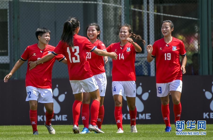 9月2日,浙江杭州女足球员徐彩平(右二)在进球后与队友庆祝。 当日,在2020年中国足球协会女子足球超级联赛第四轮比赛中,江苏苏宁女足以5比1战胜浙江杭州女足。 新华社记者江文耀摄