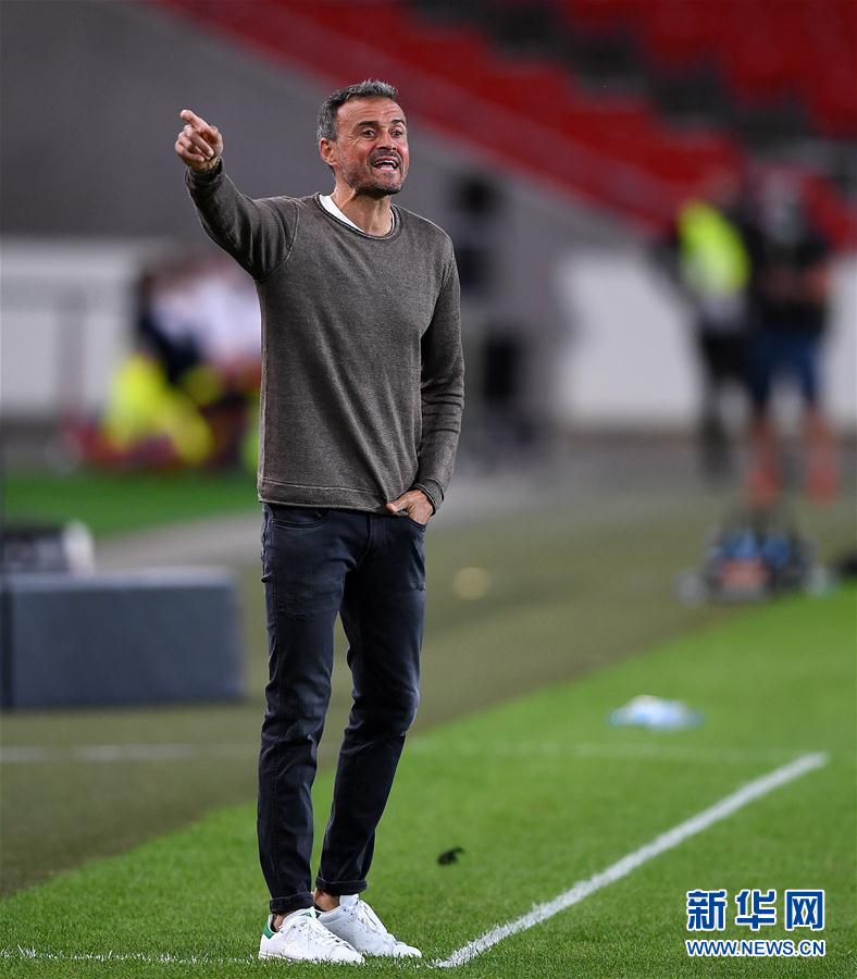 9月3日,西班牙队主教练恩里克在场边指挥。 当日,在德国斯图加特举行的一场欧洲国家足球联赛的比赛中,德国队主场以1比1战平西班牙队。 新华社发