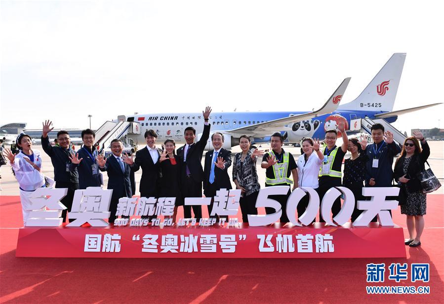 9月5日,参加“冬奥冰雪号”彩绘飞机首航仪式的嘉宾与工作人员在活动结束后合影留念。 当日,北京2022年冬奥会和冬残奥会首架主题彩绘飞机“冬奥冰雪号”在首都国际机场正式亮相并飞往成都完成首航。 新华社记者贺长山摄