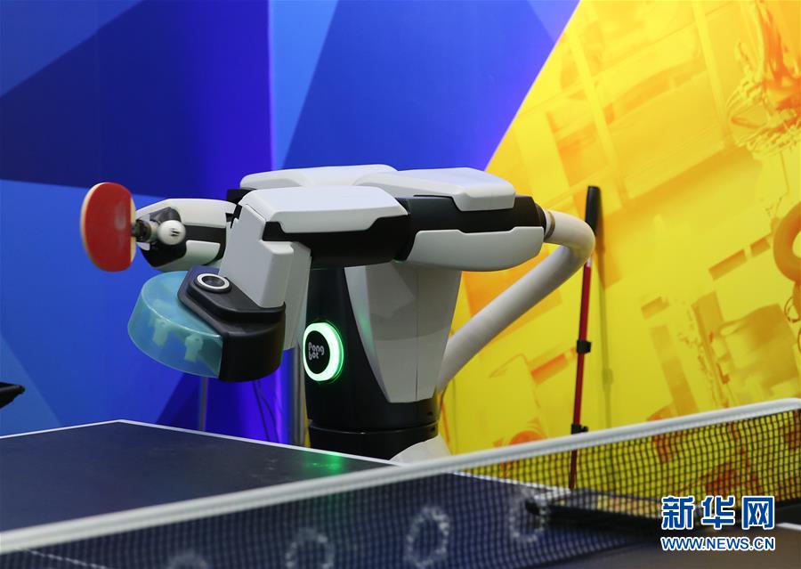 图为9月7日拍摄的发球机器人。 2020年中国国际服务贸易交易会于9月4日至9日在北京举行。在服贸会综合展区一处展台,一个名叫“庞伯特”的乒乓球发球机器人吸引了许多观众的目光。据了解,这个机器人不仅能够自动发球,还可以根据用户喜好,对球速、角度、高度、落点区域进行个性化设置。 新华社记者 潘思危 摄