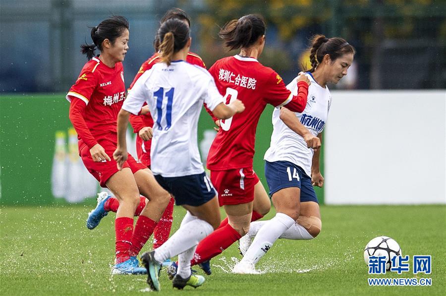 9月12日,浙江杭州女足队球员徐彩平(右一)在比赛中带球突破。 当日,在2020年中国足球协会女子足球超级联赛第七轮比赛中,广东梅州五华队以2比2战平浙江杭州女足队。 新华社发(陈欣波摄)