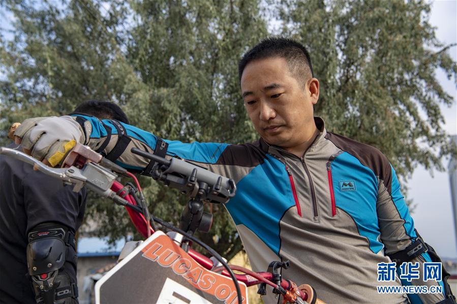 秋日下午,乌鲁木齐天气微凉,户外运动正当时。 护肘、手套、头盔等护具逐一穿戴完毕,39岁的高冬旭跨上越野摩托车,右手拧动油门,冲上雅玛里克山的荒野小道。阵阵马达轰鸣,却盖不住他与骑友们的爽朗笑声。 三五好友,骑行山野,是高冬旭的户外运动爱好之一。在他看来,骑行是一种高效的与自然接触、享受自然的方式。“新疆地貌丰富,有太多适合越野骑行的线路。”这位来自内蒙古的汉子,在新疆打拼事业的同时,也在这块户外运动宝地寻得了属于自己的“宝藏”。 历经多年,从产生兴趣到摸索门道,高冬旭对越野骑行的理解也逐步加深。为在山野骑行中更好保护自己和队友,他还主动学习绳索、登山等多门户外运动技能,并考取户外急救等相关证书。 随着骑行里程渐长,高冬旭也褪去初入门时单一追求刺激的青涩。如今的每次出行,更像是他和骑友随着车轮感受生活的美妙过程。被问及对越野骑行的感情,他脱口而出:“能活多久,我就坚持多久!” 在乌鲁木齐雅玛里克山,高冬旭在出发前调试摩托车(9月10日摄)。 新华社记者 胡虎虎 摄