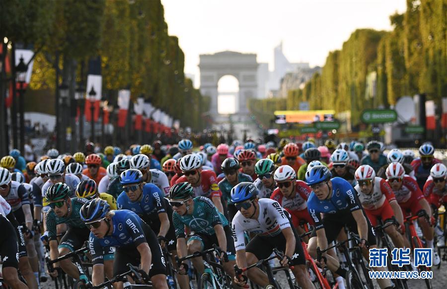 9月20日,参赛选手在香榭丽舍大街骑行。 当日,2020环法自行车赛在巴黎香榭丽舍大街落下帷幕。阿联酋航空车队的波加查尔以87小时20分05秒的总成绩,成为环法历史上首位加冕总冠军的斯洛文尼亚车手。 新华社/法新