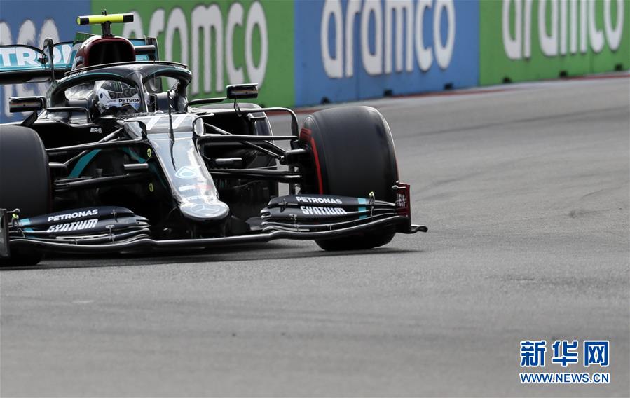 9月26日,梅赛德斯车队芬兰车手博塔斯在排位赛中。 当日,在2020赛季世界一级方程式锦标赛(F1)俄罗斯大奖赛排位赛中,梅赛德斯车队英国车手汉密尔顿夺得杆位,红牛车队荷兰车手维斯塔潘排名第二,梅赛德斯车队芬兰车手博塔斯排名第三。 新华社/美联