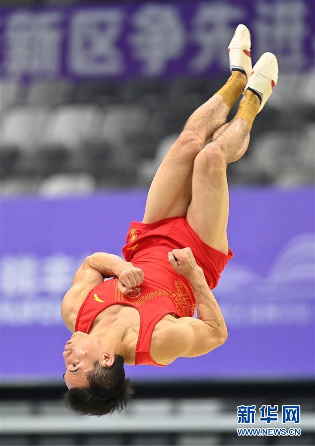9月27日,国家集训队选手邓书弟在男子自由操决赛中。最终,他以14.666分的成绩获得冠军。 当日,2020年全国体操锦标赛男子自由操决赛在广东肇庆举行。 新华社记者 程敏 摄