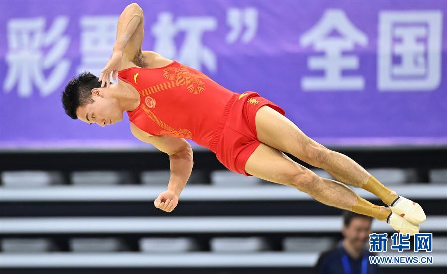 9月27日,国家集训队选手邓书弟在男子自由操决赛中。最终,他以14.666分的成绩获得冠军。 当日,2020年全国体操锦标赛男子自由操决赛在广东肇庆举行。 新华社记者 程敏 摄