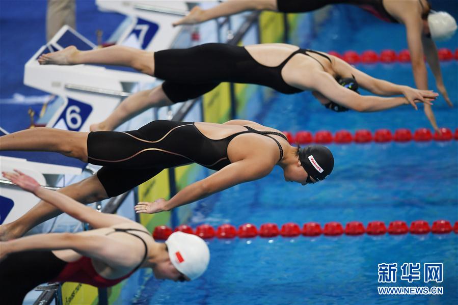 9月28日,王简嘉禾(中)在比赛中出发。 当日,在青岛举行的2020全国游泳冠军赛暨东京奥运会达标赛女子800米自由泳预赛中,辽宁浩沙队选手王简嘉禾以8分20秒96的成绩获得第一名。 新华社记者李紫恒摄