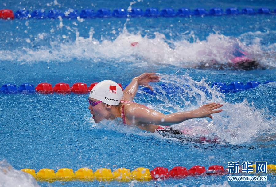 9月29日,刘湘在比赛中。 当日,在青岛举行的2020全国游泳冠军赛暨东京奥运会达标赛女子100米蝶泳预赛中,广东队选手刘湘以1分00秒94的成绩获得第十六名。 新华社记者 李紫恒 摄