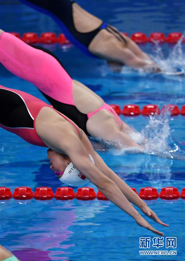 9月29日,刘湘在比赛中入水。 当日,在青岛举行的2020全国游泳冠军赛暨东京奥运会达标赛女子100米蝶泳预赛中,广东队选手刘湘以1分00秒94的成绩获得第十六名。 新华社记者 李紫恒 摄