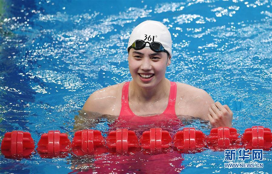 9月29日,张雨霏在比赛后。 当日,在青岛举行的2020全国游泳冠军赛暨东京奥运会达标赛女子100米蝶泳预赛中,江苏四方队选手张雨霏以55秒62的成绩获得第一名,并打破亚洲纪录。 新华社记者 陶希夷 摄