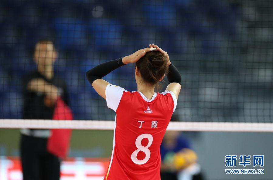 9月30日,辽宁华君队球员丁霞在比赛中。 当日,在广东江门举行的2020年全国女排锦标赛第二阶段交叉赛中,辽宁华君队以0比3不敌上海光明优倍队。 新华社记者秦朗摄