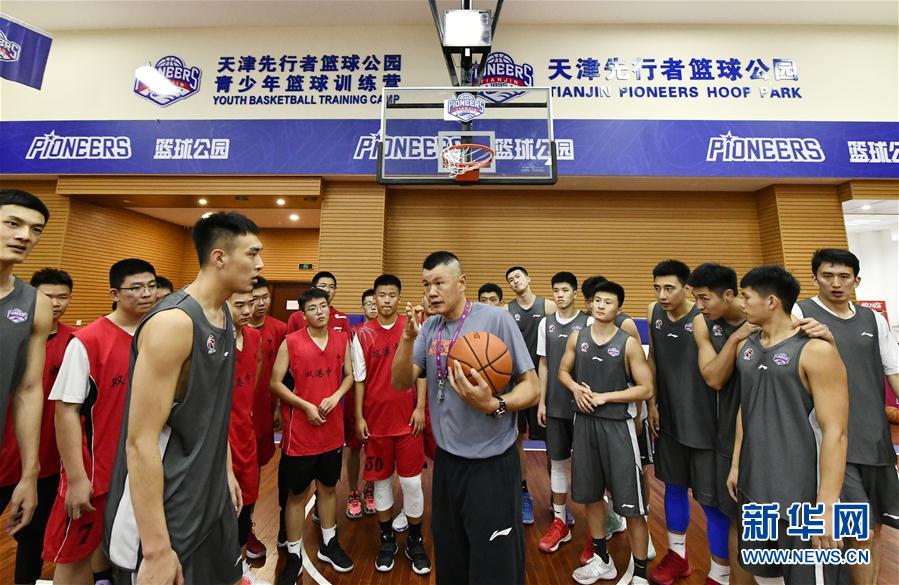 10月8日,天津先行者队主教练刘铁(中)在公开训练课上指导。 当日,天津荣钢先行者篮球俱乐部邀请天津市双港中学校篮球队的学生与俱乐部球员在天津先行者篮球公园共同参加了一场公开训练课,这也标志着天津先行者篮球公园正式投入使用。据了解,俱乐部将在篮球公园开设课程并委派驻场教练,将其打造成为青少年篮球训练营,进一步普及篮球运动。 新华社记者 李然 摄