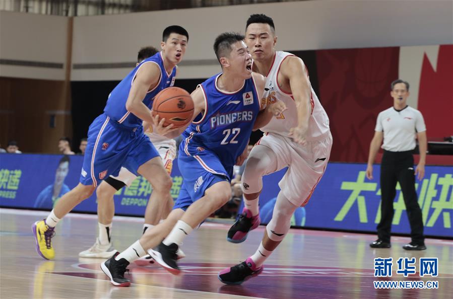 10月13日,天津先行者队球员史仪(前左)在比赛中带球突破。 当日,在浙江省诸暨市举行的2020-2021赛季中国男子篮球职业联赛(CBA)季前赛中,天津先行者队以76比70战胜深圳马可波罗队。 新华社发(郭斌 摄)