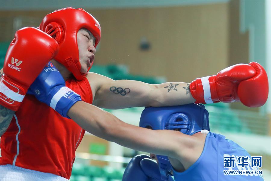 10月18日,贵州队选手杨成宇(左)与山东队选手王小雪在女子60公斤级预赛中。 当日,2020年“迁安杯”全国女子拳击锦标赛在河北省迁安市唐山九江体育中心进行第二日比赛。在60公斤级预赛中,贵州队选手杨成宇以5比0战胜山东队选手王小雪,晋级下一轮。 新华社记者 欧东衢 摄