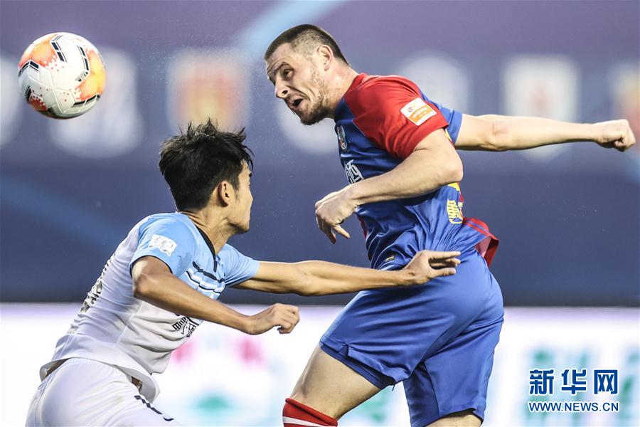 10月16日至19日,2020赛季中超联赛第15轮全部八场比赛战罢。在争冠组八进四首回合比赛中,广州恒大和河北华夏幸福率先登场。上半场尹鸿博世界波打破僵局,易边后吴少聪扳平比分,随后韦世豪造点、艾克森命中,韦世豪补时阶段头球再入一球,恒大3:1先下一城。本场比赛也是争冠组四场首回合较量中唯一取得胜负的比赛。在其它三场平局的较量中,山东鲁能泰山2:2战平老对手北京中赫国安;“上海德比”上海绿地申花与上海上港0:0握手言和;江苏苏宁与重庆当代1:1战平。在保级组的四场首回合较量中,率先出战的天津泰达迎来久违的胜利,以2:0战胜了深圳佳兆业。这是泰达本赛季的首胜,更为泰达在保级战中抢得先机。升班马石家庄永昌凭借37岁外援马修斯在第81分钟的进球,2:1逆转战胜大连人,在两回合的比赛中占据优势。河南建业1:0小胜武汉卓尔。青岛黄海青港与广州富力0:0战平。 青岛黄海青港 0-0 广州富力 10月19日,广州富力与青岛黄海之间的中超第二阶段保级组首回合较量在大连金州体育场打响。最终,双方在90分钟内都未能破门,以0:0战平。 广州富力进入第二阶段后,外援阵容发生较大变化,扎哈维和萨巴先后离队,雷纳尔迪尼奥也因伤缺席。好在球队从重庆当代和长春亚泰租借来阿德里安和日夫科维奇助阵。本场比赛这两名新援都得以出场,加上登贝莱和托西奇,富力派出四外援的最强阵容。 不过即便如此,富力队依然没能攻破青岛黄海的大门。富力最好的机会出现在第79分钟,阿德里安左侧的角球找到陈志钊,后者的射门被对手挡出,叶楚贵补射空门得手。不过富力还来不及庆祝,助理裁判便举旗示意登贝莱、日夫科维奇处在越位位置获利。经过VAR回放,此球被判越位在先,进球无效。最终双方以0:0结束了一场闷战。 图为10月19日,青岛黄海青港队球员拉多尼奇(右)在比赛中头球攻门。 新华社记者潘昱龙摄