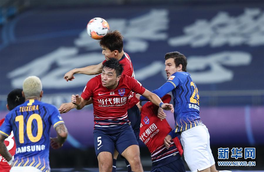 10月16日至19日,2020赛季中超联赛第15轮全部八场比赛战罢。在争冠组八进四首回合比赛中,广州恒大和河北华夏幸福率先登场。上半场尹鸿博世界波打破僵局,易边后吴少聪扳平比分,随后韦世豪造点、艾克森命中,韦世豪补时阶段头球再入一球,恒大3:1先下一城。本场比赛也是争冠组四场首回合较量中唯一取得胜负的比赛。在其它三场平局的较量中,山东鲁能泰山2:2战平老对手北京中赫国安;“上海德比”上海绿地申花与上海上港0:0握手言和;江苏苏宁与重庆当代1:1战平。在保级组的四场首回合较量中,率先出战的天津泰达迎来久违的胜利,以2:0战胜了深圳佳兆业。这是泰达本赛季的首胜,更为泰达在保级战中抢得先机。升班马石家庄永昌凭借37岁外援马修斯在第81分钟的进球,2:1逆转战胜大连人,在两回合的比赛中占据优势。河南建业1:0小胜武汉卓尔。青岛黄海青港与广州富力0:0战平。 重庆当代 1-1 江苏苏宁易购 10月19日,中超联赛第二阶段争冠组比赛再战一场,江苏苏宁队与重庆当代队1:1战平。 江苏苏宁这场比赛开局非常顺利,第7分钟特谢拉就为球队建功。不过特谢拉在随后的比赛中吃到黄牌,下一回合的较量他将因累积黄牌停赛,这对苏宁无疑是一大损失。两队上半场此后都没有获得什么机会,半场苏宁1:0领先。 易边再战,两队的攻势逐渐有了起色,但重庆的进攻更具威胁,卡尔德克两次头球都被苏宁门将顾超神勇扑出。第73分钟,卡尔德克利用角球机会,终于用头球敲开苏宁大门,为球队扳平比分。1:1的比分最终也保持到终场。 双方第二回合的比赛将于24日进行。本场比赛也是争冠组四场首回合较量的第三场平局,只有广州恒大在首回合击败河北华夏幸福取得胜利。 图为10月19日,重庆当代队球员蒋哲(中下)在比赛中拼抢头球。 新华社记者许畅摄