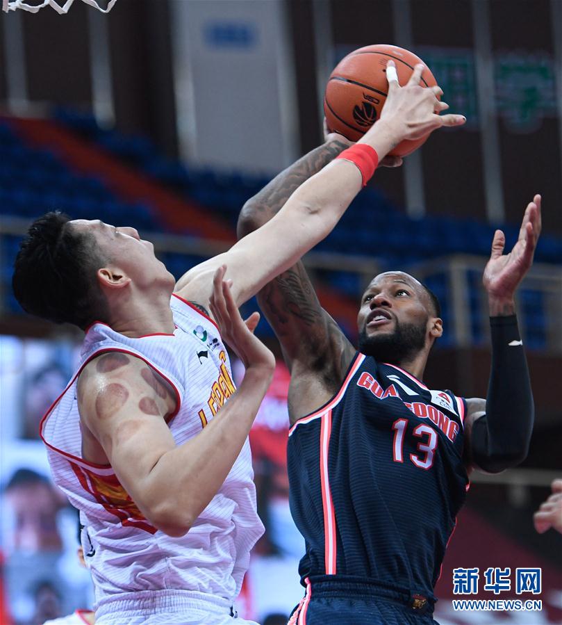 10月20日,深圳马可波罗队球员沈梓捷(左)在比赛中封盖广东东莞大益队球员威姆斯的投篮。 当日,在浙江诸暨举行的2020-2021赛季中国男子篮球职业联赛(CBA)第一阶段第二轮比赛中,广东东莞大益队以134比126战胜深圳马可波罗队。 新华社记者黄宗治摄
