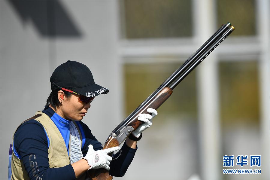 10月22日,山东队选手魏宁在女子组飞碟双向资格赛75靶比赛中。 当日,2020全国射击锦标赛(飞碟项目)暨奥运会初步队伍选拔赛在山西省临汾市开赛,共有来自全国各地22支代表队的220名运动员参赛。 新华社记者张宏祥摄