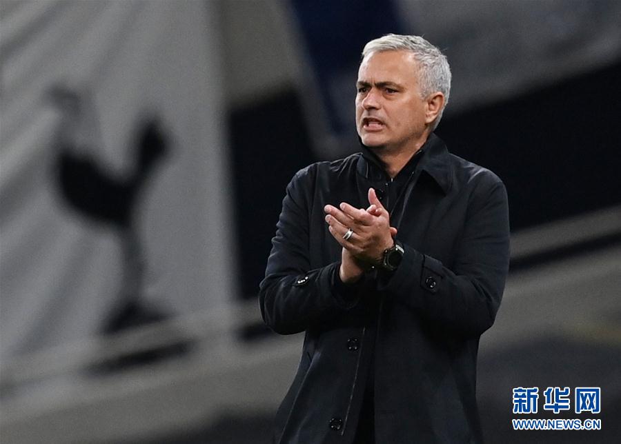 10月22日,热刺队主教练穆里尼奥在比赛中。 当日,在2020-2021赛季欧罗巴联赛J组小组赛首轮比赛中,英超托特纳姆热刺队主场以3比0战胜奥超林茨队。 新华社/路透