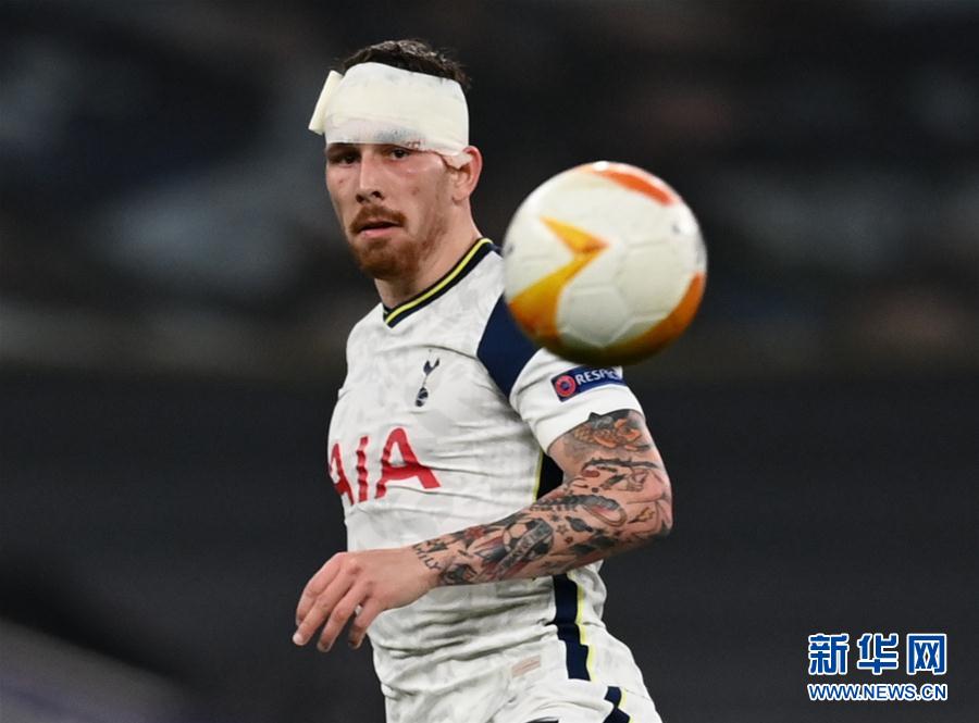 10月22日,热刺队球员霍伊别格在比赛中。 当日,在2020-2021赛季欧罗巴联赛J组小组赛首轮比赛中,英超托特纳姆热刺队主场以3比0战胜奥超林茨队。 新华社/路透