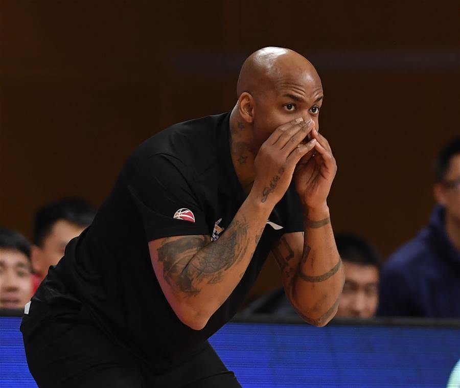 10月23日,北京紫禁勇士队马布里在比赛中指挥球员。 当日,在浙江诸暨举行的2020-2021赛季中国男子篮球职业联赛(CBA)第一阶段第三轮比赛中,北京紫禁勇士队以91比111不敌辽宁本钢队。 新华社记者 沙达提 摄