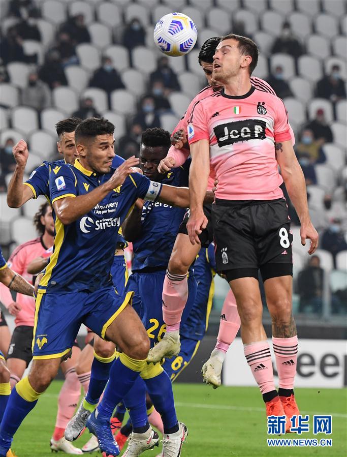 10月25日,尤文图斯队球员拉姆塞(右一)、莫拉塔(右二)在比赛中拼抢头球。 当日,在2020-2021赛季意大利足球甲级联赛第五轮比赛中,尤文图斯队主场1比1战平维罗纳队。 新华社发(阿尔贝托·林格利亚 摄)