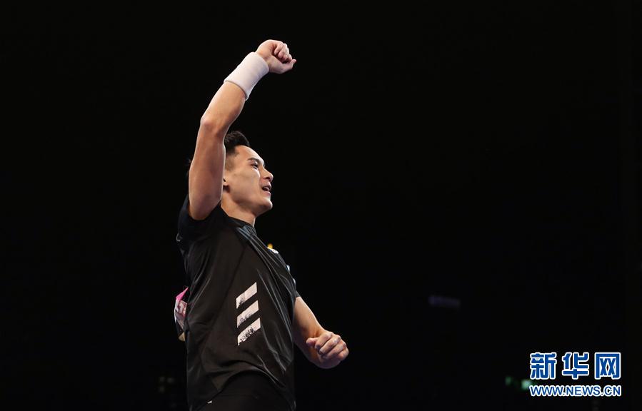10月29日,陕西队选手姚捷在男子撑杆跳高比赛中获胜后庆祝。姚捷以5米50的成绩获得冠军。 当日,中国田径街头巡回赛成都站撑杆跳高比赛在成都春熙路举行。 新华社记者 江宏景 摄