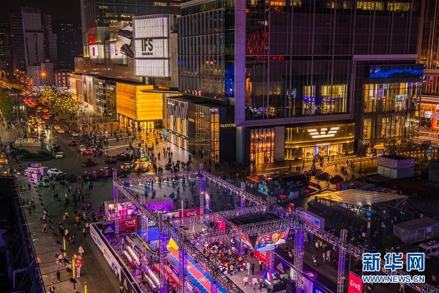 这是10月29日拍摄的中国田径街头巡回赛成都站比赛现场。 当日,中国田径街头巡回赛成都站撑杆跳高比赛在成都春熙路举行。 新华社记者 江宏景 摄