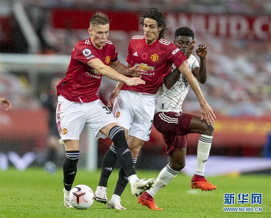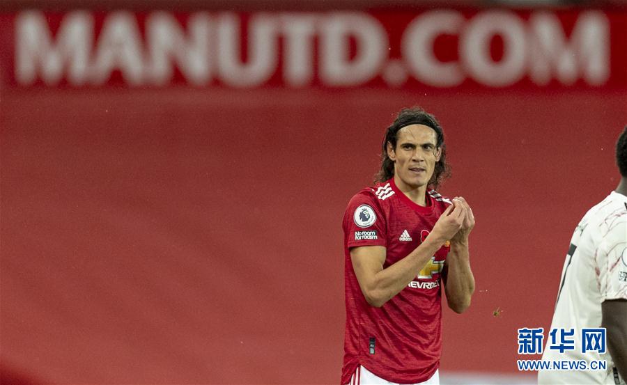 11月1日,曼联队球员卡瓦尼在比赛中。 当日,在2020-2021赛季英格兰足球超级联赛第七轮比赛中,曼彻斯特联队主场以0比1不敌阿森纳队。 新华社发