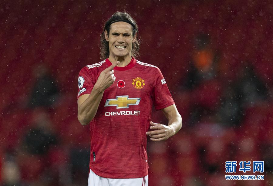 11月1日,曼联队球员卡瓦尼在比赛中。 当日,在2020-2021赛季英格兰足球超级联赛第七轮比赛中,曼彻斯特联队主场以0比1不敌阿森纳队。 新华社发