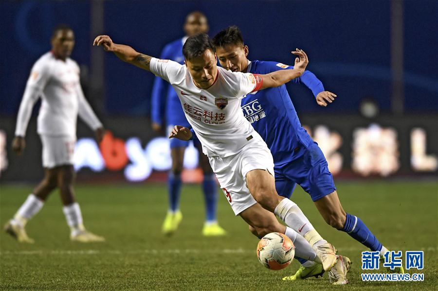 10月31日至11月2日,2020赛季中超联赛第18轮比赛战罢。联赛赛至尾声,争冠组和保级组的比赛更加激烈、残酷。 在争冠组半决赛次回合比赛中,江苏苏宁上演以少打多、以弱胜强的“戏码”,通过加时赛战胜了强大的上海上港。广州恒大队3:1击败北京国安队,两回合总比分3:1晋级决赛。江苏苏宁与广州恒大会师决赛。在争冠组排位赛中,重庆当代与上海申花在90分钟内重庆2:0获胜,但两回合双方战成3:3,加时赛也未能分出胜负,最终在点球大战中重庆笑到最后。山东鲁能泰山和河北华夏幸福则献上一场9个进球的大战,鲁能凭借加时赛4球的“神迹”,挺进争夺第五名的比赛。 在大连进行的保级组第二轮的比赛中,大连人队和天津泰达队在补时阶段爆发多人冲突,先后有三名球员领到红牌。最终泰达队以两回合3:2的总比分晋级第九名争夺战。河南建业3:2战胜被罚下两人的广州富力,从而两回合5:3获胜,将与天津泰达争夺联赛第九名。深圳2:2战平石家庄,总比分3:2保级成功。青岛与武汉的比赛堪称惨烈,两队共有三名球员被罚下。双方鏖战至残酷的点球大战,最终青岛黄海青港两回合总比分8:7险胜武汉卓尔成功保级。 石家庄永昌 2-2 深圳佳兆业 11月2日,中超联赛保级组第二轮石家庄永昌对阵深圳佳兆业的次回合比赛进行。上半场普雷西亚多头槌破门,穆里奇爆射扳平比分。下半场马修斯利用深圳门将出击失误、吊射空门得手,永昌球员杨云出现乌龙,深圳2:2战平石家庄,总比分3:2保级成功。 双方首回合交手中,深圳1:0胜永昌占得先机。本场开始后,双方在中场寸土必争,深圳给永昌后场施加的压力更多。第30分钟,深圳先拔头筹:塞尔纳斯开出右侧任意球,石家庄防守漏人,普雷西亚多门前头球入网。深圳1:0永昌。 上半场补时阶段,永昌成功续命,穆里奇突入禁区靠住对方后卫一记爆射扳平比分。永昌1:1深圳。 易边再战,第57分钟,永昌中场长传,深圳门将张鹭出击,在大禁区附近和双方两名球员撞在一起倒地,皮球飞出不远,马修斯跟上吊射空门得手。永昌2:1深圳。 比赛最终阶段,永昌功亏一篑。第80分钟,深圳开出右路角球,皮球最终打在永昌球员杨云头上折射入网。全场比赛结束,深圳2:2永昌,总比分3:2成功保级。 图为11月2日,深圳佳兆业队球员郜林(前)与石家庄永昌队球员廖承坚在比赛中拼抢。 新华社记者姚剑锋摄
