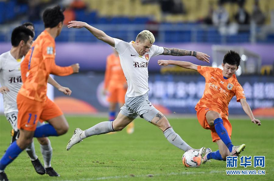 10月31日至11月2日,2020赛季中超联赛第18轮比赛战罢。联赛赛至尾声,争冠组和保级组的比赛更加激烈、残酷。 在争冠组半决赛次回合比赛中,江苏苏宁上演以少打多、以弱胜强的“戏码”,通过加时赛战胜了强大的上海上港。广州恒大队3:1击败北京国安队,两回合总比分3:1晋级决赛。江苏苏宁与广州恒大会师决赛。在争冠组排位赛中,重庆当代与上海申花在90分钟内重庆2:0获胜,但两回合双方战成3:3,加时赛也未能分出胜负,最终在点球大战中重庆笑到最后。山东鲁能泰山和河北华夏幸福则献上一场9个进球的大战,鲁能凭借加时赛4球的“神迹”,挺进争夺第五名的比赛。 在大连进行的保级组第二轮的比赛中,大连人队和天津泰达队在补时阶段爆发多人冲突,先后有三名球员领到红牌。最终泰达队以两回合3:2的总比分晋级第九名争夺战。河南建业3:2战胜被罚下两人的广州富力,从而两回合5:3获胜,将与天津泰达争夺联赛第九名。深圳2:2战平石家庄,总比分3:2保级成功。青岛与武汉的比赛堪称惨烈,两队共有三名球员被罚下。双方鏖战至残酷的点球大战,最终青岛黄海青港两回合总比分8:7险胜武汉卓尔成功保级。 山东鲁能泰山 6-3 河北华夏幸福 10月31日,中超联赛争冠组5-8名排位赛次回合中,山东鲁能泰山和河北华夏幸福献上一场9个进球的大战!鲁能凭借加时赛4球的“神迹”,挺进争夺第五名的比赛。 首回合双方战至2:2平,本场鲁能凭借加时赛格德斯、段刘愚、佩莱、郭田雨的四个进球,最终以6:3(总比分8:5)击败华夏。 本回合比赛双方心态较为放松。第19分钟,华夏后卫张俊哲回传出现低级失误,莫伊塞斯抢断后长驱直入单刀破门,鲁能1:0领先。 不过两分钟后,华夏迅速扳平。丁海峰在熟悉的左路突破传球,皮球弹在对方后卫身上后来到图雷脚下,后者跟进低射破门。 高拉特重回华夏首发阵容,有效激活了球队进攻端。第72分钟,高拉特送出精准直塞,图雷单刀推射二度建功,华夏将比分反超。 不过鲁能随后迎来大礼,第79分钟,王秋明乌龙助攻,格德斯推射破门,双方2:2战平,比赛被拖入加时赛。 加时赛中,鲁能迎来主宰时刻——第98分钟段刘愚助攻格德斯再入一球,第101分钟段刘愚远射破门,第103分钟佩莱抢射破门。最后时刻双方仍有进球,廖伟为华夏扳回一城,但郭田雨头球破门为鲁能锦上添花,并将本场比分锁定为6:3。 图为10月31日,河北华夏幸福队球员梅米舍维奇(中)在比赛中带球进攻。 新华社记者许畅摄