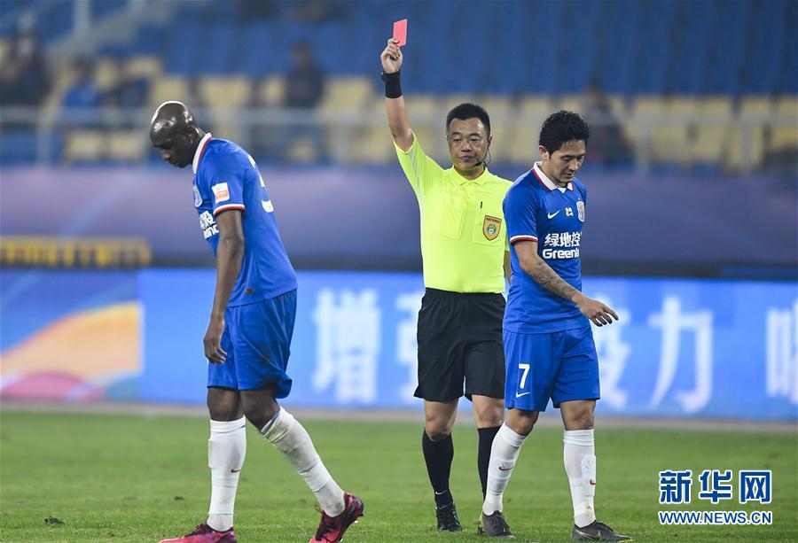 10月31日至11月2日,2020赛季中超联赛第18轮比赛战罢。联赛赛至尾声,争冠组和保级组的比赛更加激烈、残酷。 在争冠组半决赛次回合比赛中,江苏苏宁上演以少打多、以弱胜强的“戏码”,通过加时赛战胜了强大的上海上港。广州恒大队3:1击败北京国安队,两回合总比分3:1晋级决赛。江苏苏宁与广州恒大会师决赛。在争冠组排位赛中,重庆当代与上海申花在90分钟内重庆2:0获胜,但两回合双方战成3:3,加时赛也未能分出胜负,最终在点球大战中重庆笑到最后。山东鲁能泰山和河北华夏幸福则献上一场9个进球的大战,鲁能凭借加时赛4球的“神迹”,挺进争夺第五名的比赛。 在大连进行的保级组第二轮的比赛中,大连人队和天津泰达队在补时阶段爆发多人冲突,先后有三名球员领到红牌。最终泰达队以两回合3:2的总比分晋级第九名争夺战。河南建业3:2战胜被罚下两人的广州富力,从而两回合5:3获胜,将与天津泰达争夺联赛第九名。深圳2:2战平石家庄,总比分3:2保级成功。青岛与武汉的比赛堪称惨烈,两队共有三名球员被罚下。双方鏖战至残酷的点球大战,最终青岛黄海青港两回合总比分8:7险胜武汉卓尔成功保级。 重庆当代 12-9 上海绿地申花 11月1日,中超联赛第5-8名排位赛次回合重庆当代对阵上海申花,90分钟内重庆2:0获胜,但两回合双方战成3:3,加时赛也未能分出胜负,最终在点球大战中重庆笑到最后。 两队第一回合交锋申花3:1战胜重庆当代。本场重庆一反首回合全本土首发配置,派遣四外援先发最强阵,申花只有姆比亚单外援出场,厄瓜多尔双外援在替补席上。 手握两球优势的申花开场后摆出防守态势,重庆则开始主动寻找进攻机会,围攻申花禁区。第25分钟,卡尔德克任意球稍稍偏出球门右侧。上半场双方的身体对抗十分激烈,裁判出示了多张黄牌。 中场休息后两队没做人员调整。第62分钟,卡尔德克拿球后传入禁区,西里诺射门入网,重庆1:0领先。不到2分钟,卡尔德克跟进推射远角得手,重庆扩大比分。第88分钟,姆比亚在禁区外飞铲放倒马尔西尼奥,吃到红牌。下半场补时阶段,吴庆飞铲杨旭,主裁看过慢镜后罚下吴庆。 90分钟常规时间内重庆队2:0战胜申花,两队两回合踢成3:3。加时赛上半场,秦升防守时拉拽马尔西尼奥吃到第二张黄牌被罚下,申花只剩下九人作战。在30分钟的加时赛中,两队都没有取得进球,比赛进入点球大战。 点球大战中,双方前五个球员全部罚进。直到第10轮,申花的博拉尼奥斯打飞点球,重庆队把握住了机会赢得点球大战,并以两回合13:12的总比分战胜申花,锁定联赛前六名。 图为11月1日,主裁判邢琦(中)向上海绿地申花队球员姆比亚(左)出示红牌。 新华社记者许畅摄