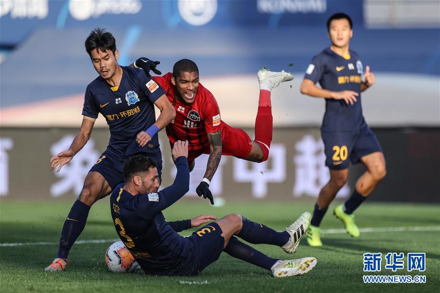 10月31日至11月2日,2020赛季中超联赛第18轮比赛战罢。联赛赛至尾声,争冠组和保级组的比赛更加激烈、残酷。 在争冠组半决赛次回合比赛中,江苏苏宁上演以少打多、以弱胜强的“戏码”,通过加时赛战胜了强大的上海上港。广州恒大队3:1击败北京国安队,两回合总比分3:1晋级决赛。江苏苏宁与广州恒大会师决赛。在争冠组排位赛中,重庆当代与上海申花在90分钟内重庆2:0获胜,但两回合双方战成3:3,加时赛也未能分出胜负,最终在点球大战中重庆笑到最后。山东鲁能泰山和河北华夏幸福则献上一场9个进球的大战,鲁能凭借加时赛4球的“神迹”,挺进争夺第五名的比赛。 在大连进行的保级组第二轮的比赛中,大连人队和天津泰达队在补时阶段爆发多人冲突,先后有三名球员领到红牌。最终泰达队以两回合3:2的总比分晋级第九名争夺战。河南建业3:2战胜被罚下两人的广州富力,从而两回合5:3获胜,将与天津泰达争夺联赛第九名。深圳2:2战平石家庄,总比分3:2保级成功。青岛与武汉的比赛堪称惨烈,两队共有三名球员被罚下。双方鏖战至残酷的点球大战,最终青岛黄海青港两回合总比分8:7险胜武汉卓尔成功保级。 河南建业 3-2 广州富力 11月1日,中超联赛保级组第二轮次回合比赛继续展开,河南建业3:2战胜被罚下两人的广州富力,从而两回合5:3获胜,将与天津泰达争夺联赛第九名。 由于首回合富力1:2不敌建业,本场比赛他们一开场就大举猛攻。第12分钟,他们的努力得到回报,叶楚贵的远射经折射划出一道诡异弧线后入网,富力1:0领先,同时也将双方的总比分扳平。不过河南队的卡兰加在第40分钟帮助球队赢得一个点球,巴索戈主罚的点球击中球门内侧弹入网窝。 比赛的转折点出现在第62分钟,富力队弋腾再次放倒卡兰加,累计两张黄牌被罚下场。不过少了一人的富力队没有放弃,第65分钟他们利用前场任意球机会由托西奇头球破门,双方再次回到同一起跑线。 少一人作战的富力不想将比赛拖入加时,但全力进攻的同时后方难免犯错。第76分钟,河南队罗歆门前补射破门,帮助河南队在总比分上再度领先。落后的富力更加急躁,第79分钟,托西奇对罗歆犯规也累积两张黄牌被驱逐出场。少两人作战的富力再难逆天改命,补时阶段,卡兰加破门将本场的比分定格在3:2,建业最终两回合5:3胜出。 图为11月1日,广州富力队球员弋腾(左一)在禁区内对河南建业队球员卡兰加(前右上)犯规,河南建业队获得一粒点球。 新华社记者潘昱龙摄