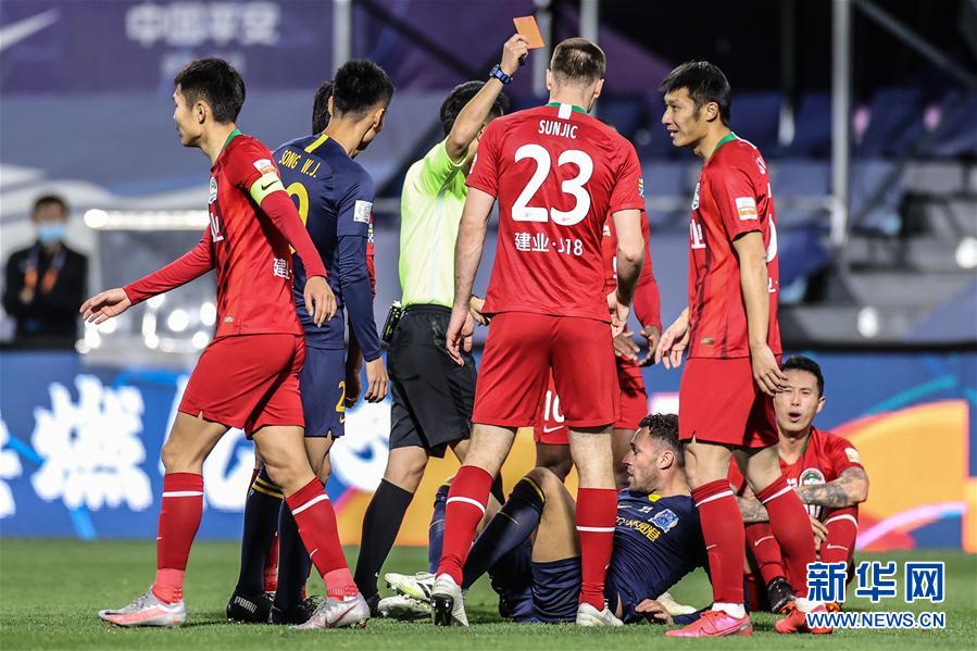 10月31日至11月2日,2020赛季中超联赛第18轮比赛战罢。联赛赛至尾声,争冠组和保级组的比赛更加激烈、残酷。 在争冠组半决赛次回合比赛中,江苏苏宁上演以少打多、以弱胜强的“戏码”,通过加时赛战胜了强大的上海上港。广州恒大队3:1击败北京国安队,两回合总比分3:1晋级决赛。江苏苏宁与广州恒大会师决赛。在争冠组排位赛中,重庆当代与上海申花在90分钟内重庆2:0获胜,但两回合双方战成3:3,加时赛也未能分出胜负,最终在点球大战中重庆笑到最后。山东鲁能泰山和河北华夏幸福则献上一场9个进球的大战,鲁能凭借加时赛4球的“神迹”,挺进争夺第五名的比赛。 在大连进行的保级组第二轮的比赛中,大连人队和天津泰达队在补时阶段爆发多人冲突,先后有三名球员领到红牌。最终泰达队以两回合3:2的总比分晋级第九名争夺战。河南建业3:2战胜被罚下两人的广州富力,从而两回合5:3获胜,将与天津泰达争夺联赛第九名。深圳2:2战平石家庄,总比分3:2保级成功。青岛与武汉的比赛堪称惨烈,两队共有三名球员被罚下。双方鏖战至残酷的点球大战,最终青岛黄海青港两回合总比分8:7险胜武汉卓尔成功保级。 河南建业 3-2 广州富力 11月1日,中超联赛保级组第二轮次回合比赛继续展开,河南建业3:2战胜被罚下两人的广州富力,从而两回合5:3获胜,将与天津泰达争夺联赛第九名。 由于首回合富力1:2不敌建业,本场比赛他们一开场就大举猛攻。第12分钟,他们的努力得到回报,叶楚贵的远射经折射划出一道诡异弧线后入网,富力1:0领先,同时也将双方的总比分扳平。不过河南队的卡兰加在第40分钟帮助球队赢得一个点球,巴索戈主罚的点球击中球门内侧弹入网窝。 比赛的转折点出现在第62分钟,富力队弋腾再次放倒卡兰加,累计两张黄牌被罚下场。不过少了一人的富力队没有放弃,第65分钟他们利用前场任意球机会由托西奇头球破门,双方再次回到同一起跑线。 少一人作战的富力不想将比赛拖入加时,但全力进攻的同时后方难免犯错。第76分钟,河南队罗歆门前补射破门,帮助河南队在总比分上再度领先。落后的富力更加急躁,第79分钟,托西奇对罗歆犯规也累积两张黄牌被驱逐出场。少两人作战的富力再难逆天改命,补时阶段,卡兰加破门将本场的比分定格在3:2,建业最终两回合5:3胜出。 图为11月1日,主裁判王迪向广州富力队球员托西奇(下)出示红牌。 新华社记者潘昱龙摄